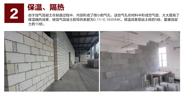 2、 保溫、隔熱:由于加氣混凝土在制造過程中,內(nèi)部形成了微小的氣孔,這些氣孔在材料中形成空氣層,大大提高了保溫隔熱效果,使加氣混凝土的導(dǎo)熱系數(shù)為0.11-0.16W/MK。保溫效果是粘土磚的5倍,普通混凝土的10倍。